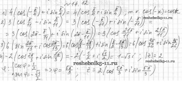 Готовая домашняя работа с ответами по Алгебре за 11 класс Мерзляк, Номировский, Поляков Учебник Алгоритм успеха Углубленный уровень Вентана-граф 2019 ФГОС - §14. Комплексная плоскость. Тригонометрическая форма комплексного числа 14.12
