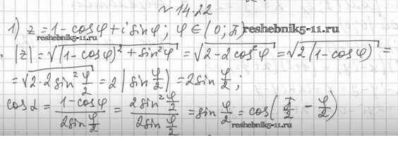 Готовая домашняя работа с ответами по Алгебре за 11 класс Мерзляк, Номировский, Поляков Учебник Алгоритм успеха Углубленный уровень Вентана-граф 2019 ФГОС - §14. Комплексная плоскость. Тригонометрическая форма комплексного числа 14.22