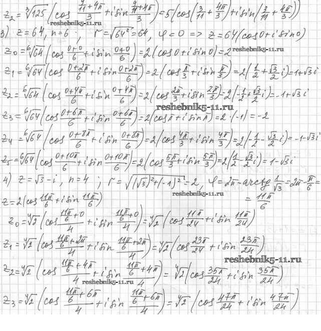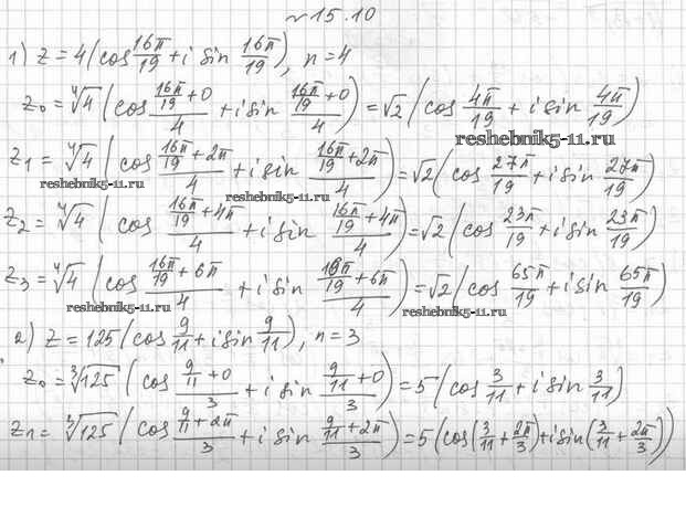 Готовая домашняя работа с ответами по Алгебре за 11 класс Мерзляк, Номировский, Поляков Учебник Алгоритм успеха Углубленный уровень Вентана-граф 2019 ФГОС - §15. Умножение и деление комплексных чисел, записанных в тригонометрической форме. Корень n-й степени из комплексного числа 15.10