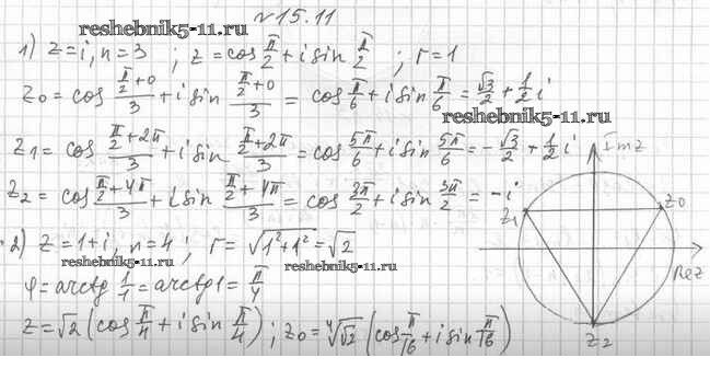 Готовая домашняя работа с ответами по Алгебре за 11 класс Мерзляк, Номировский, Поляков Учебник Алгоритм успеха Углубленный уровень Вентана-граф 2019 ФГОС - §15. Умножение и деление комплексных чисел, записанных в тригонометрической форме. Корень n-й степени из комплексного числа 15.11