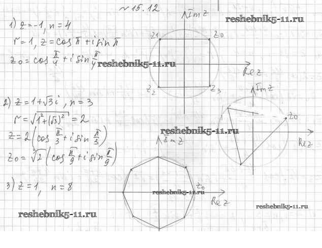 Готовая домашняя работа с ответами по Алгебре за 11 класс Мерзляк, Номировский, Поляков Учебник Алгоритм успеха Углубленный уровень Вентана-граф 2019 ФГОС - §15. Умножение и деление комплексных чисел, записанных в тригонометрической форме. Корень n-й степени из комплексного числа 15.12