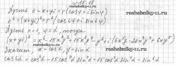 Готовая домашняя работа с ответами по Алгебре за 11 класс Мерзляк, Номировский, Поляков Учебник Алгоритм успеха Углубленный уровень Вентана-граф 2019 ФГОС - §15. Умножение и деление комплексных чисел, записанных в тригонометрической форме. Корень n-й степени из комплексного числа 15.18