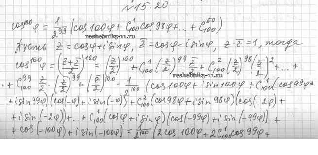 Готовая домашняя работа с ответами по Алгебре за 11 класс Мерзляк, Номировский, Поляков Учебник Алгоритм успеха Углубленный уровень Вентана-граф 2019 ФГОС - §15. Умножение и деление комплексных чисел, записанных в тригонометрической форме. Корень n-й степени из комплексного числа 15.20
