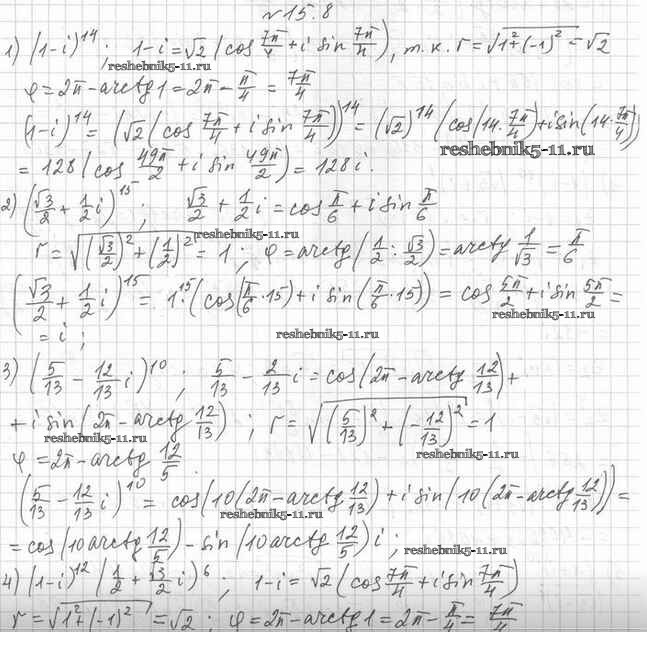 Готовая домашняя работа с ответами по Алгебре за 11 класс Мерзляк, Номировский, Поляков Учебник Алгоритм успеха Углубленный уровень Вентана-граф 2019 ФГОС - §15. Умножение и деление комплексных чисел, записанных в тригонометрической форме. Корень n-й степени из комплексного числа 15.8