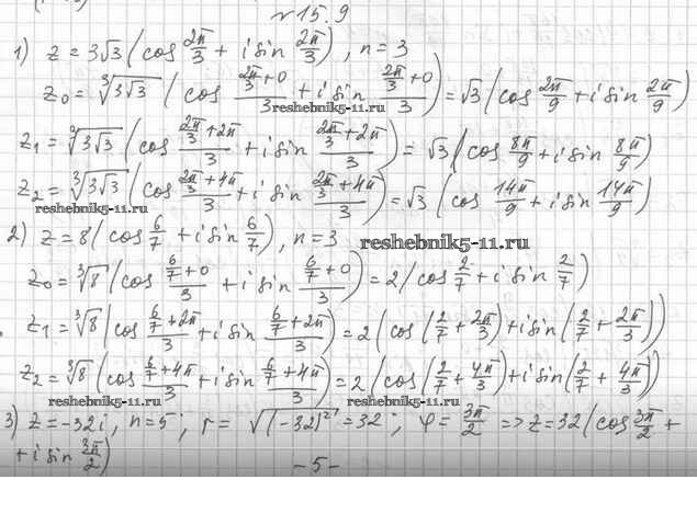 Готовая домашняя работа с ответами по Алгебре за 11 класс Мерзляк, Номировский, Поляков Учебник Алгоритм успеха Углубленный уровень Вентана-граф 2019 ФГОС - §15. Умножение и деление комплексных чисел, записанных в тригонометрической форме. Корень n-й степени из комплексного числа 15.9