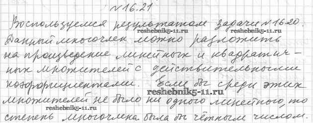Готовая домашняя работа с ответами по Алгебре за 11 класс Мерзляк, Номировский, Поляков Учебник Алгоритм успеха Углубленный уровень Вентана-граф 2019 ФГОС - §16. Решение алгебраических уравнений на множестве комплексных чисел 16.21