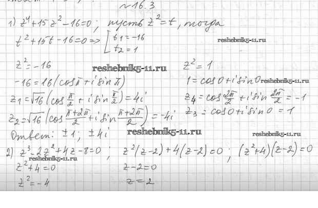 Готовая домашняя работа с ответами по Алгебре за 11 класс Мерзляк, Номировский, Поляков Учебник Алгоритм успеха Углубленный уровень Вентана-граф 2019 ФГОС - §16. Решение алгебраических уравнений на множестве комплексных чисел 16.3