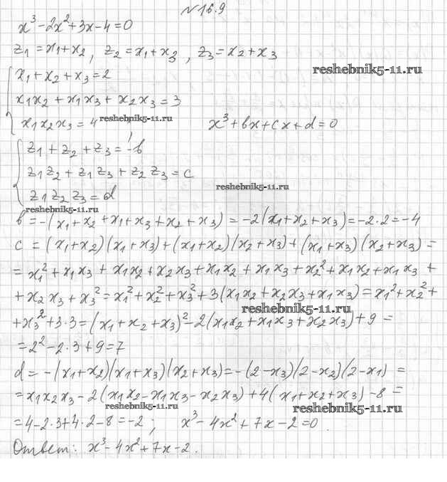 Готовая домашняя работа с ответами по Алгебре за 11 класс Мерзляк, Номировский, Поляков Учебник Алгоритм успеха Углубленный уровень Вентана-граф 2019 ФГОС - §16. Решение алгебраических уравнений на множестве комплексных чисел 16.9