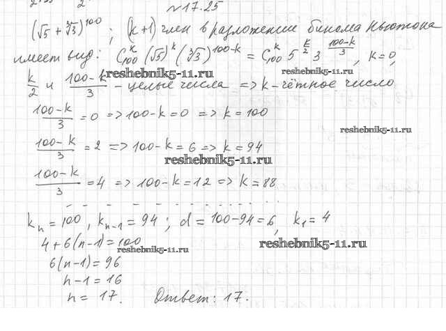 Готовая домашняя работа с ответами по Алгебре за 11 класс Мерзляк, Номировский, Поляков Учебник Алгоритм успеха Углубленный уровень Вентана-граф 2019 ФГОС - §17. Элементы комбинаторики и бином Ньютона 17.25