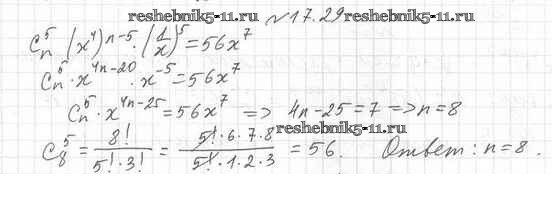 Готовая домашняя работа с ответами по Алгебре за 11 класс Мерзляк, Номировский, Поляков Учебник Алгоритм успеха Углубленный уровень Вентана-граф 2019 ФГОС - §17. Элементы комбинаторики и бином Ньютона 17.29