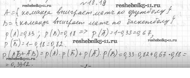 Готовая домашняя работа с ответами по Алгебре за 11 класс Мерзляк, Номировский, Поляков Учебник Алгоритм успеха Углубленный уровень Вентана-граф 2019 ФГОС - §18. Аксиомы теории вероятностей 18.18