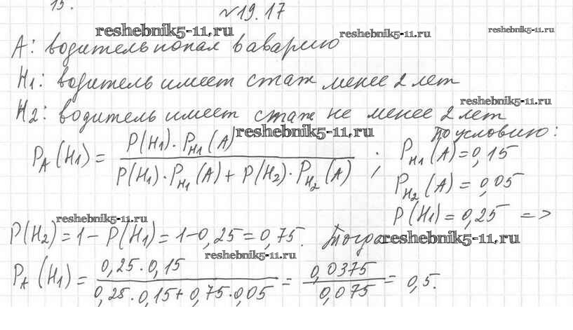 Готовая домашняя работа с ответами по Алгебре за 11 класс Мерзляк, Номировский, Поляков Учебник Алгоритм успеха Углубленный уровень Вентана-граф 2019 ФГОС - §19. Условная вероятность 19.17