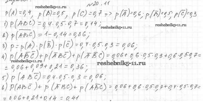Готовая домашняя работа с ответами по Алгебре за 11 класс Мерзляк, Номировский, Поляков Учебник Алгоритм успеха Углубленный уровень Вентана-граф 2019 ФГОС - §20. Независимые события 20.11