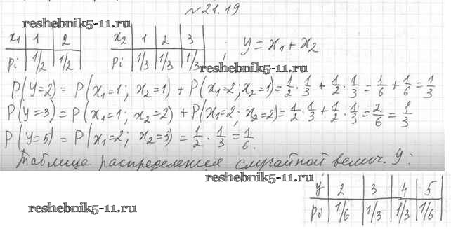 Готовая домашняя работа с ответами по Алгебре за 11 класс Мерзляк, Номировский, Поляков Учебник Алгоритм успеха Углубленный уровень Вентана-граф 2019 ФГОС - §21. Случайная величина 21.19