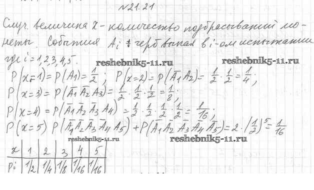 Готовая домашняя работа с ответами по Алгебре за 11 класс Мерзляк, Номировский, Поляков Учебник Алгоритм успеха Углубленный уровень Вентана-граф 2019 ФГОС - §21. Случайная величина 21.21