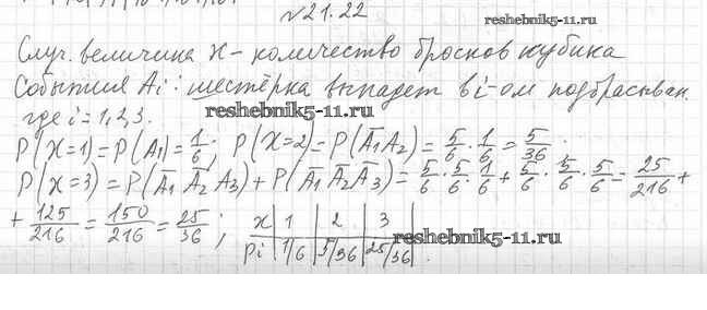 Готовая домашняя работа с ответами по Алгебре за 11 класс Мерзляк, Номировский, Поляков Учебник Алгоритм успеха Углубленный уровень Вентана-граф 2019 ФГОС - §21. Случайная величина 21.22