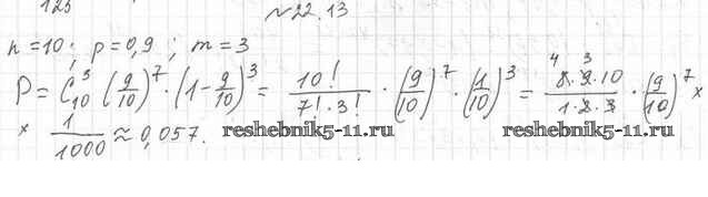 Готовая домашняя работа с ответами по Алгебре за 11 класс Мерзляк, Номировский, Поляков Учебник Алгоритм успеха Углубленный уровень Вентана-граф 2019 ФГОС - §22. Схема Бернулли. Биномиальное распределение 22.13