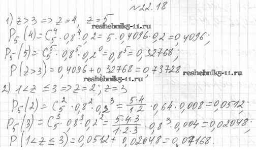 Готовая домашняя работа с ответами по Алгебре за 11 класс Мерзляк, Номировский, Поляков Учебник Алгоритм успеха Углубленный уровень Вентана-граф 2019 ФГОС - §22. Схема Бернулли. Биномиальное распределение 22.18