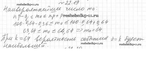 Готовая домашняя работа с ответами по Алгебре за 11 класс Мерзляк, Номировский, Поляков Учебник Алгоритм успеха Углубленный уровень Вентана-граф 2019 ФГОС - §22. Схема Бернулли. Биномиальное распределение 22.19