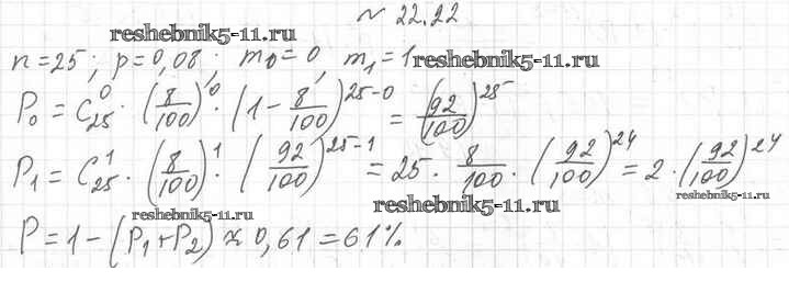 Готовая домашняя работа с ответами по Алгебре за 11 класс Мерзляк, Номировский, Поляков Учебник Алгоритм успеха Углубленный уровень Вентана-граф 2019 ФГОС - §22. Схема Бернулли. Биномиальное распределение 22.22