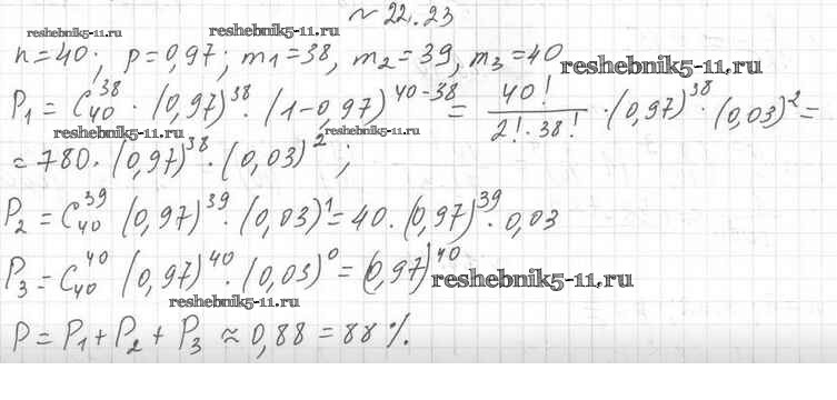Готовая домашняя работа с ответами по Алгебре за 11 класс Мерзляк, Номировский, Поляков Учебник Алгоритм успеха Углубленный уровень Вентана-граф 2019 ФГОС - §22. Схема Бернулли. Биномиальное распределение 22.23