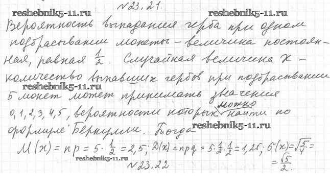 Готовая домашняя работа с ответами по Алгебре за 11 класс Мерзляк, Номировский, Поляков Учебник Алгоритм успеха Углубленный уровень Вентана-граф 2019 ФГОС - §23. Характеристики случайной величины 23.21