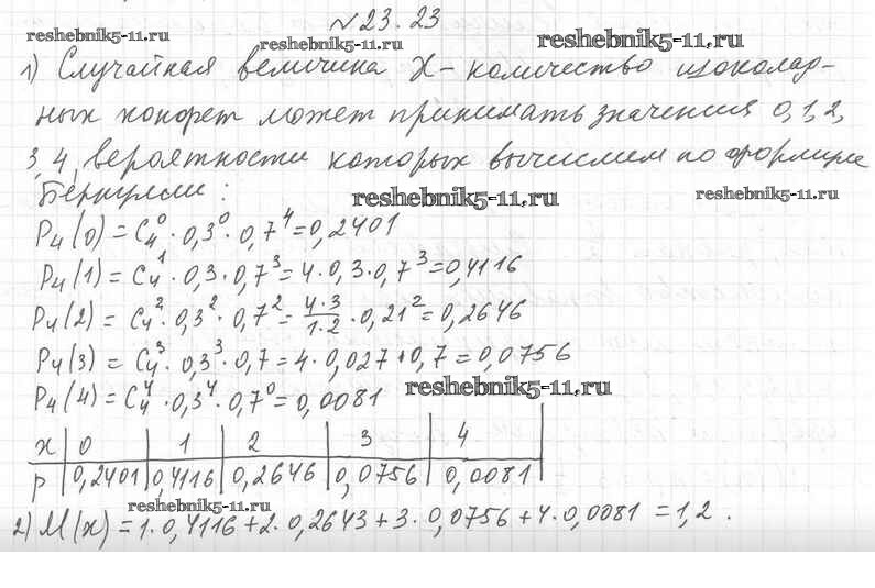Готовая домашняя работа с ответами по Алгебре за 11 класс Мерзляк, Номировский, Поляков Учебник Алгоритм успеха Углубленный уровень Вентана-граф 2019 ФГОС - §23. Характеристики случайной величины 23.23