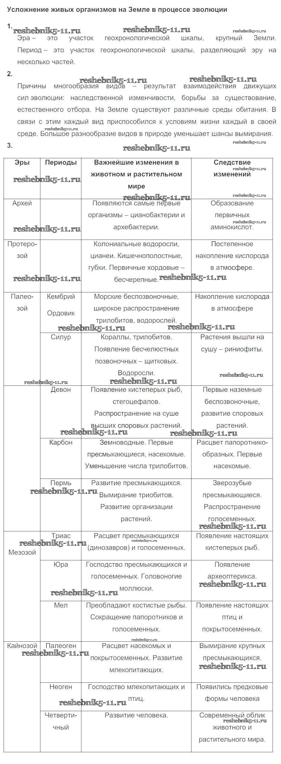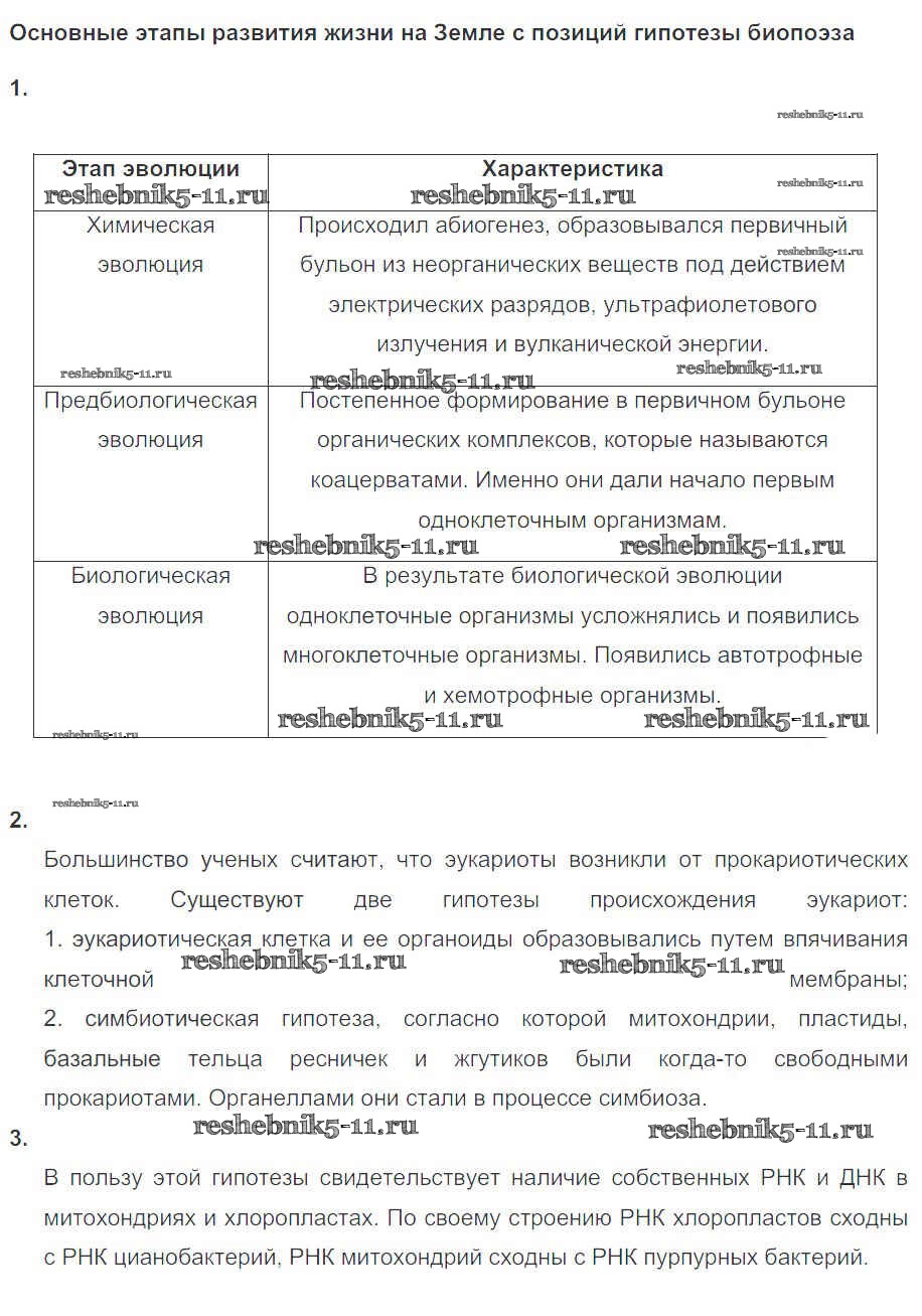 Готовая домашняя работа с ответами по Биологии за 10, 11 класс Пасечник, Швецов Рабочая тетрадь УМК Базовый уровень Дрофа 2017 ФГОС - Глава 9. Эволюция биосферы и человек Тема 1