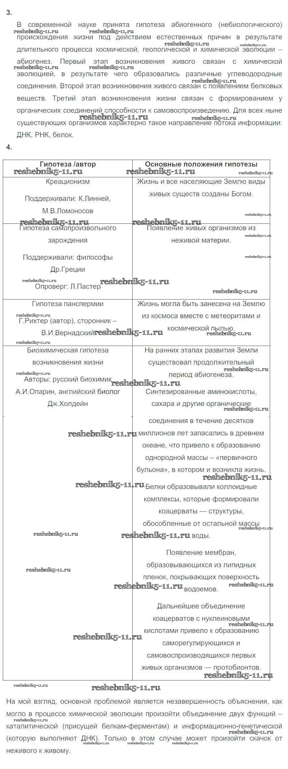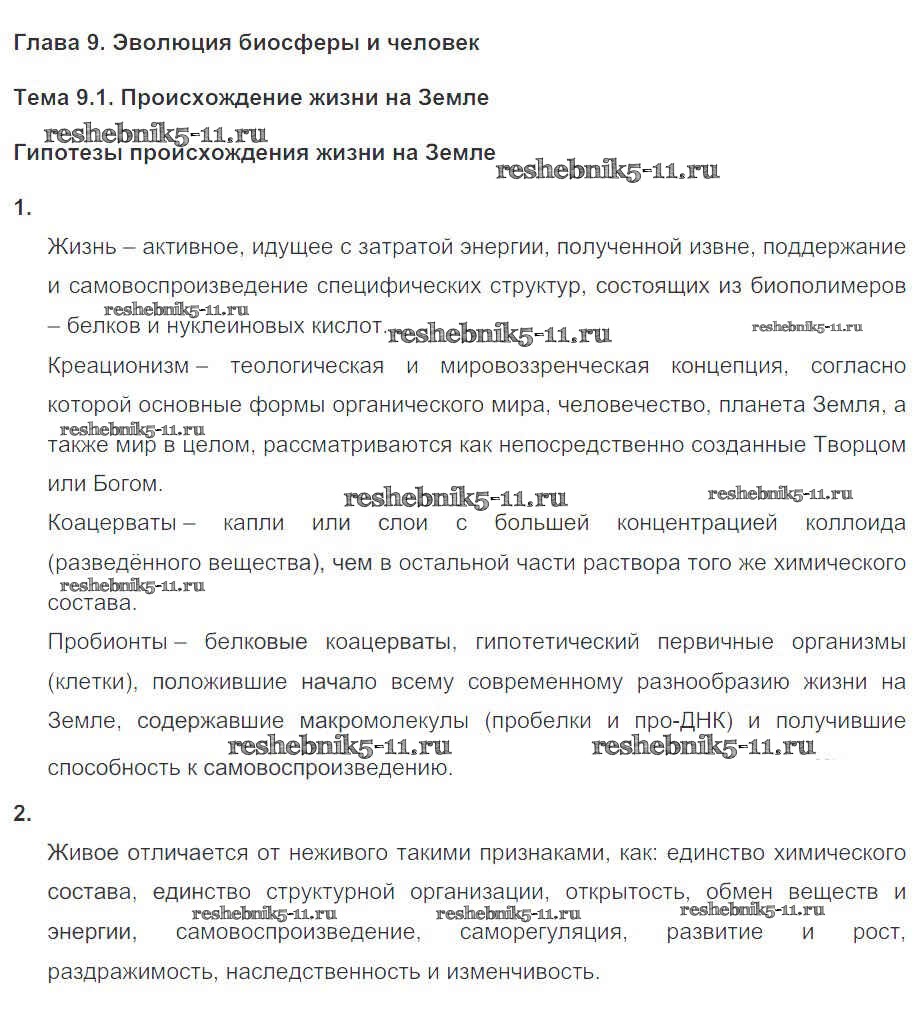 Биология за 10-11 класс Пасечник Рабочая тетрадь УМК Базовый уровень Дрофа глава 9 Тема 1
