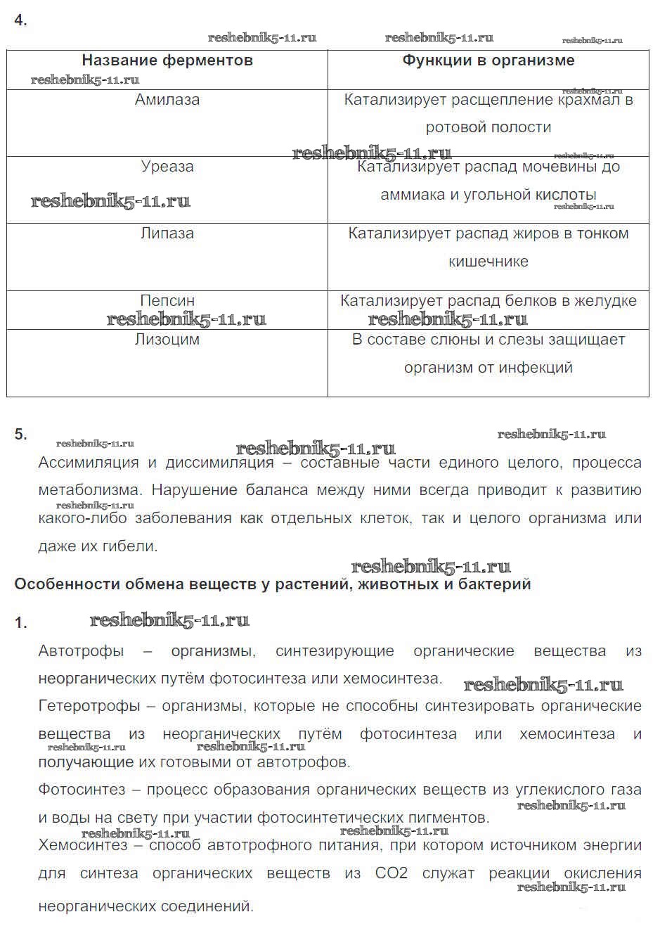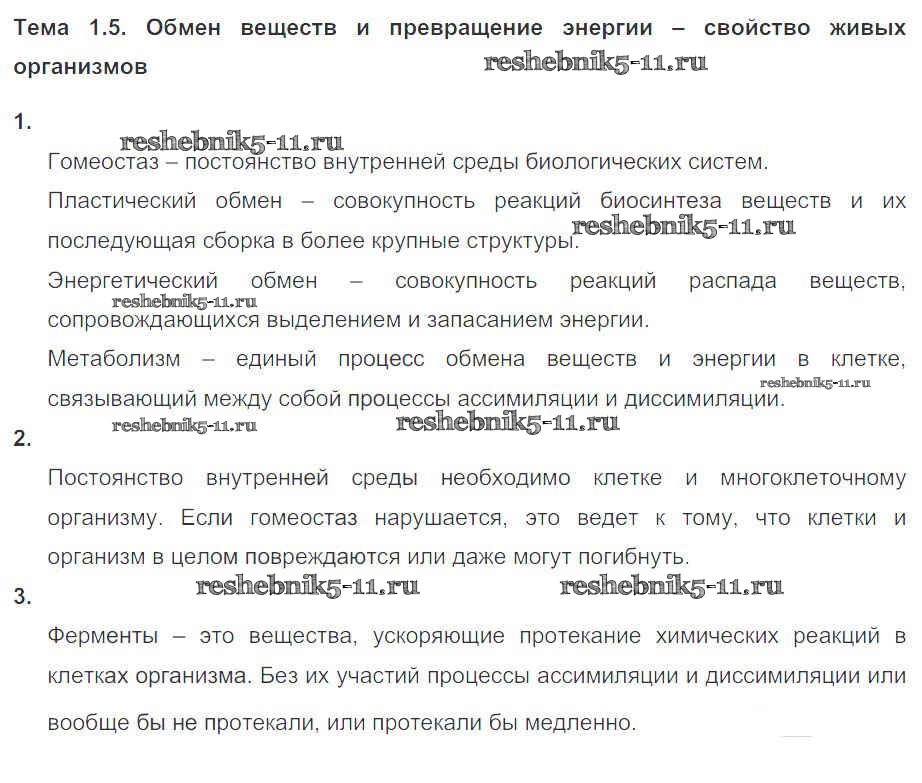 Готовая домашняя работа с ответами по Биологии за 10, 11 класс Пасечник, Швецов Рабочая тетрадь УМК Базовый уровень Дрофа 2017 ФГОС - Глава 1. Клетка Тема 5