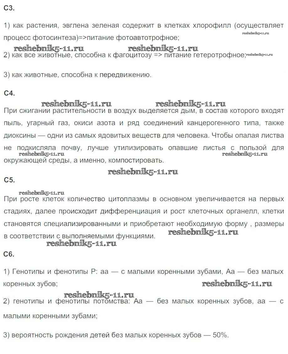 Готовая домашняя работа с ответами по Биологии за 10, 11 класс Пасечник, Швецов Рабочая тетрадь УМК Базовый уровень Дрофа 2017 ФГОС - Тренировочная итоговая работа Задания уровня C