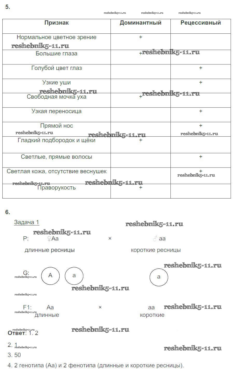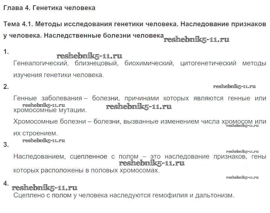 Готовая домашняя работа с ответами по Биологии за 10, 11 класс Пасечник, Швецов Рабочая тетрадь УМК Базовый уровень Дрофа 2017 ФГОС - Глава 4. Генетика человека Тема 1