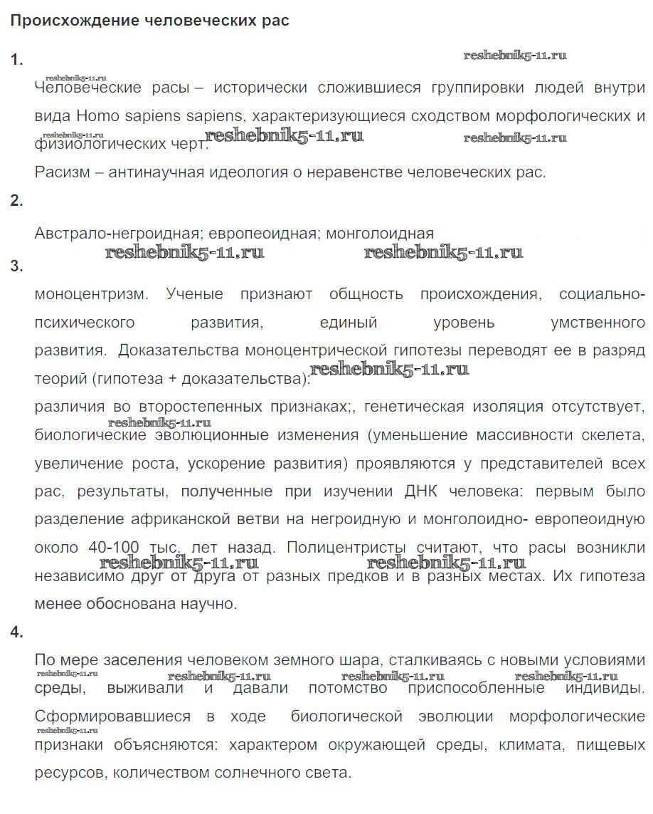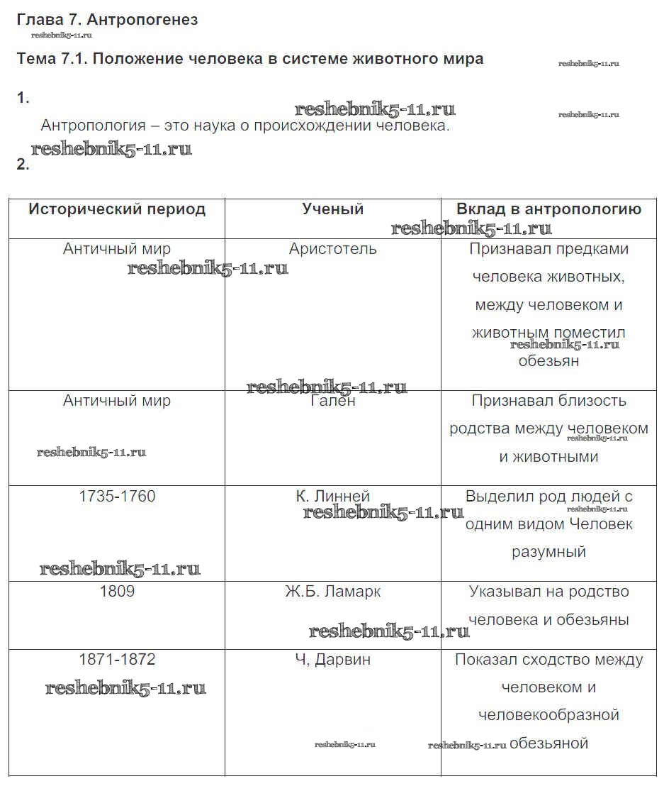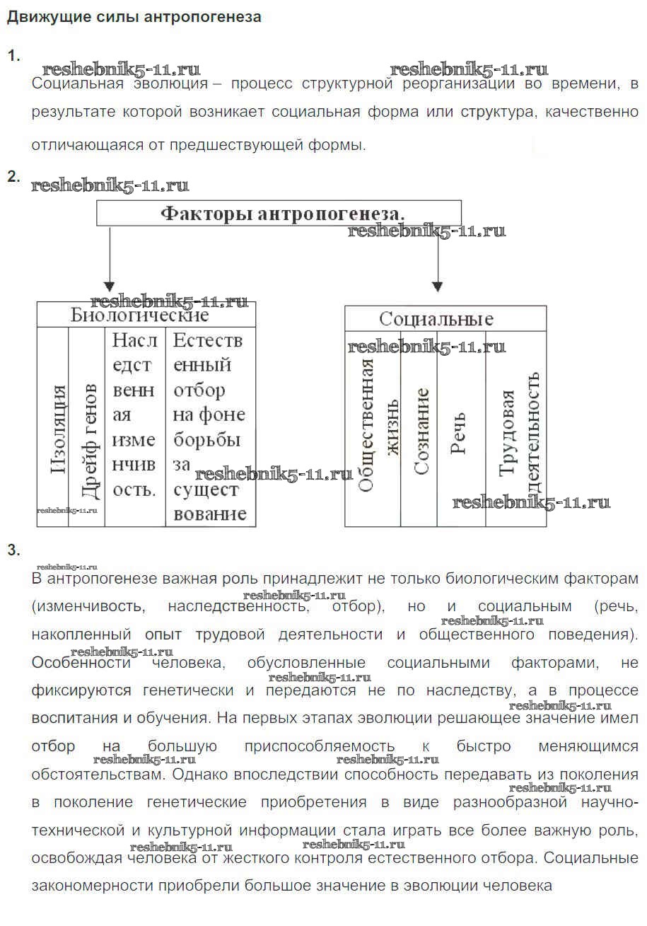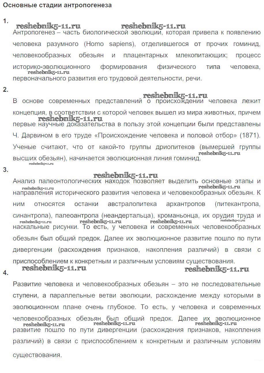 Готовая домашняя работа с ответами по Биологии за 10, 11 класс Пасечник, Швецов Рабочая тетрадь УМК Базовый уровень Дрофа 2017 ФГОС - Глава 7. Антропогенез Тема 1