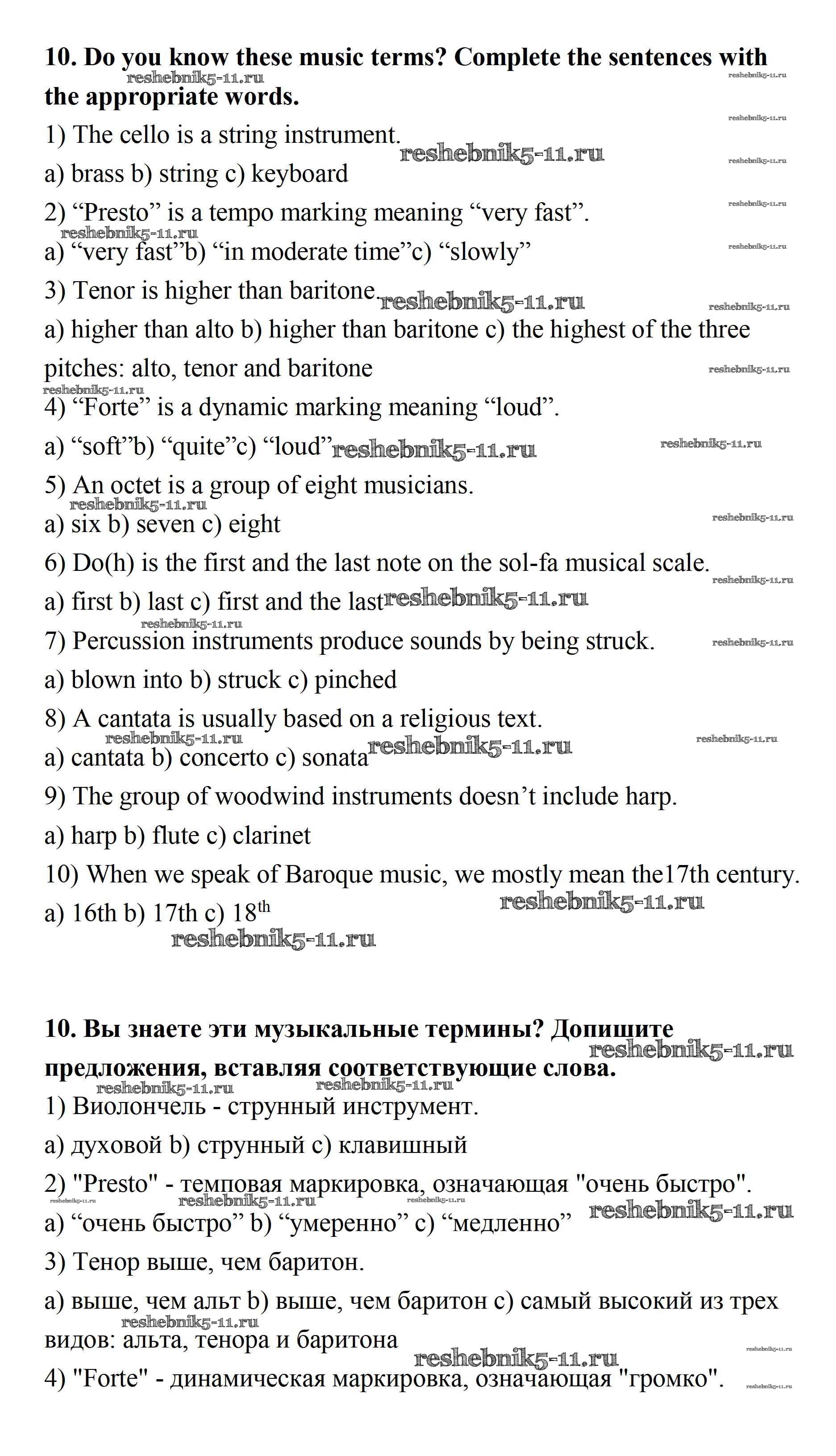 Готовая домашняя работа с ответами по Английскому языку за 11 класс Афанасьева, Михеева, Баранова Учебник Rainbow Базовый уровень Дрофа 2017 ФГОС - Step 8 10
