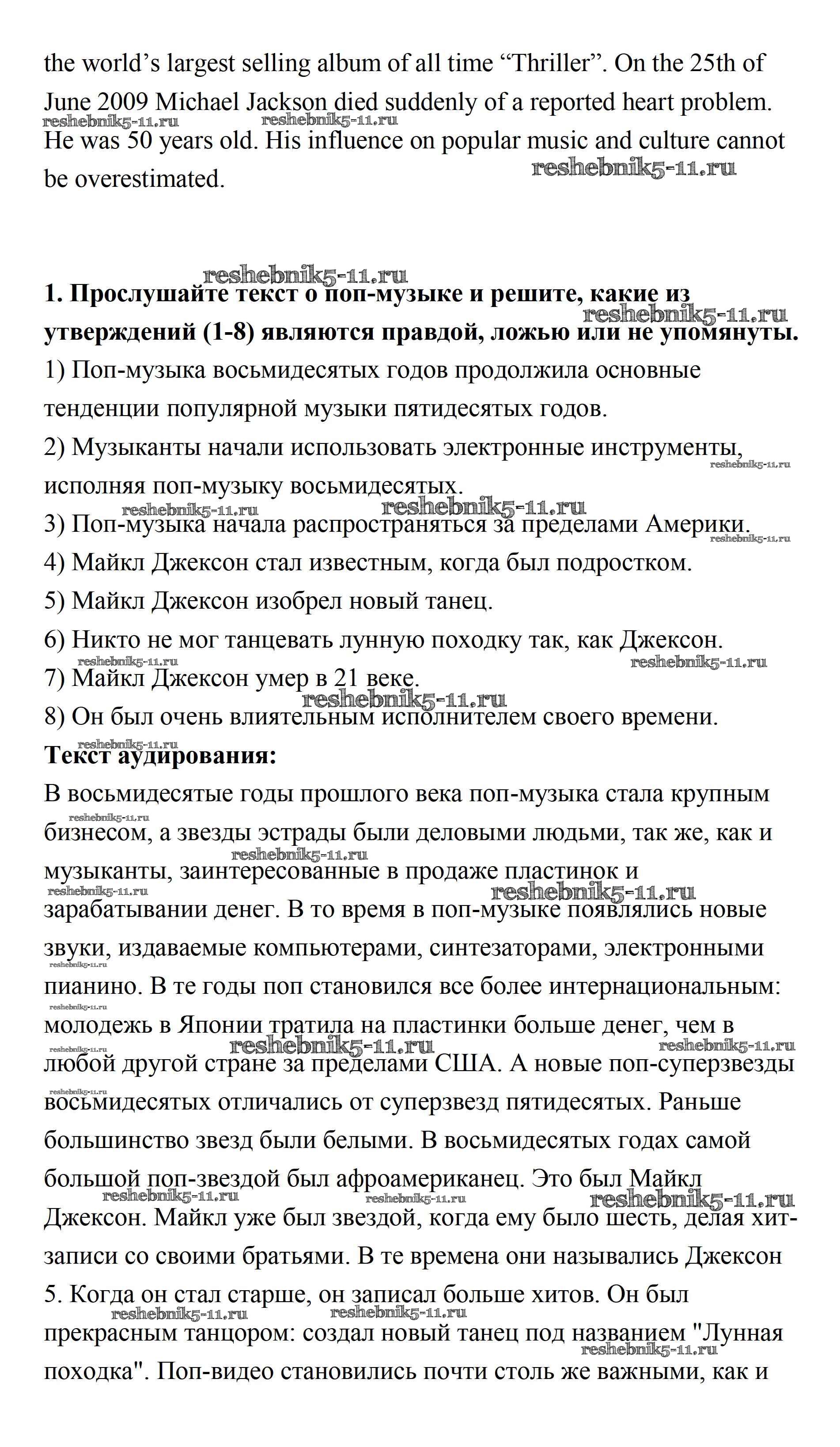 Готовая домашняя работа с ответами по Английскому языку за 11 класс Афанасьева, Михеева, Баранова Учебник Rainbow Базовый уровень Дрофа 2017 ФГОС - Step 9 1