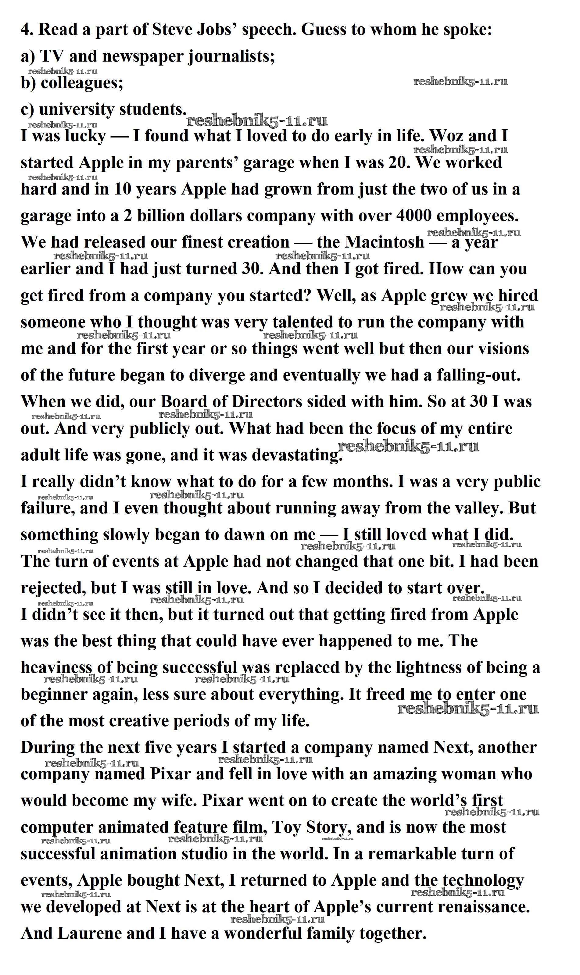 Готовая домашняя работа с ответами по Английскому языку за 11 класс Афанасьева, Михеева, Баранова Учебник Rainbow Базовый уровень Дрофа 2017 ФГОС - Step 4 4