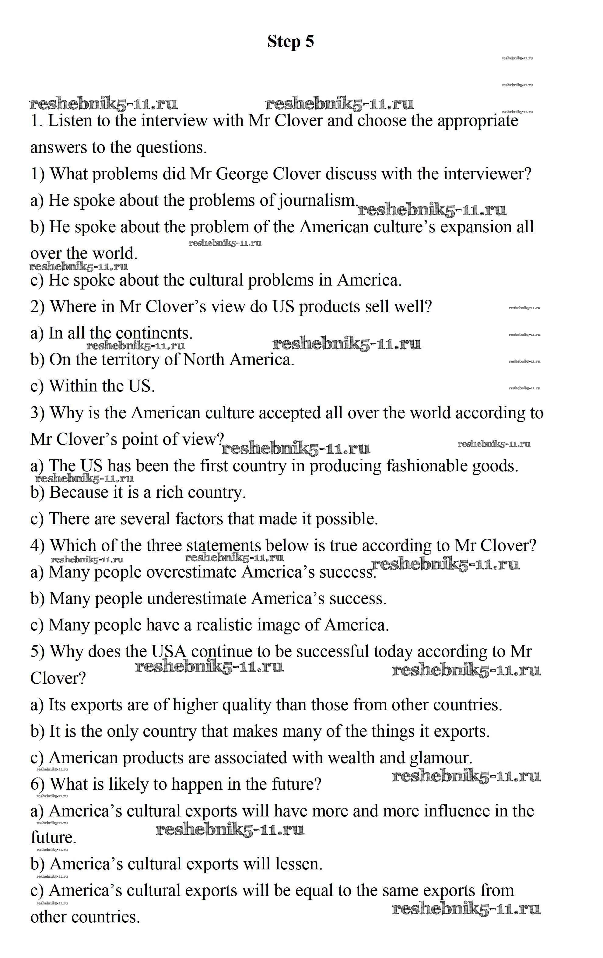 Готовая домашняя работа с ответами по Английскому языку за 11 класс Афанасьева, Михеева, Баранова Учебник Rainbow Базовый уровень Дрофа 2017 ФГОС - Step 5 1