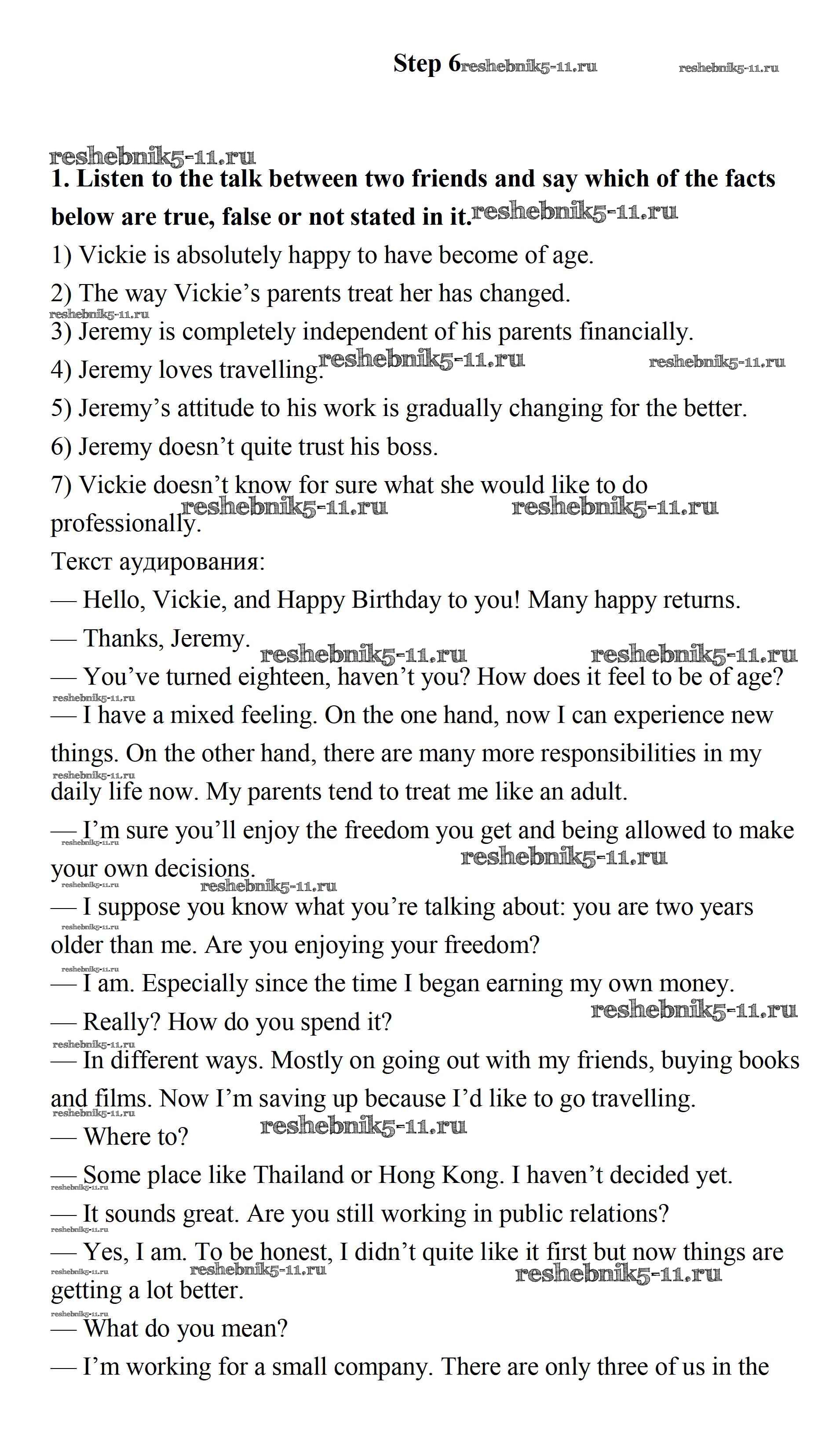 Готовая домашняя работа с ответами по Английскому языку за 11 класс Афанасьева, Михеева, Баранова Учебник Rainbow Базовый уровень Дрофа 2017 ФГОС - Step 6 1