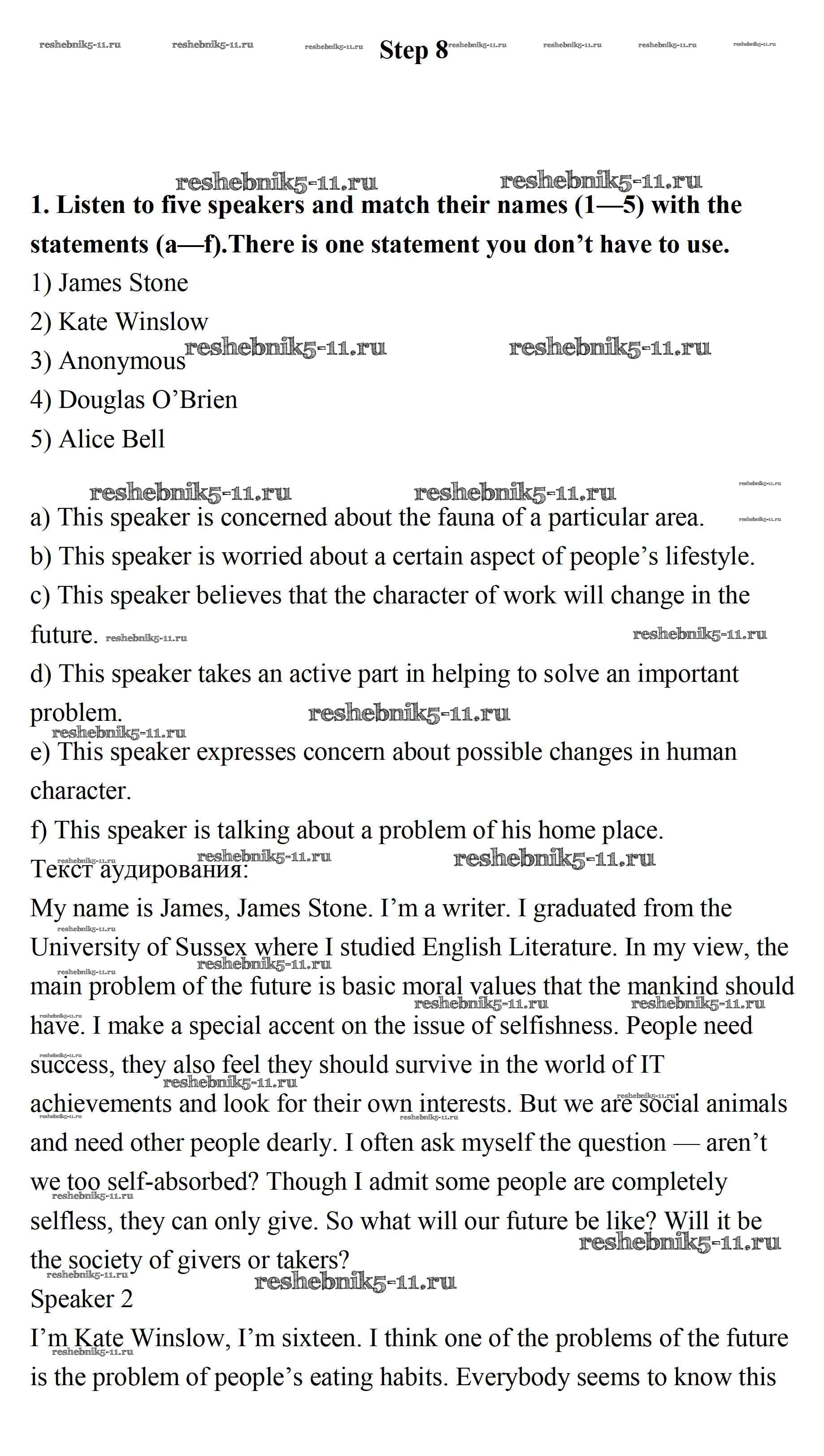 Готовая домашняя работа с ответами по Английскому языку за 11 класс Афанасьева, Михеева, Баранова Учебник Rainbow Базовый уровень Дрофа 2017 ФГОС - Step 8 1