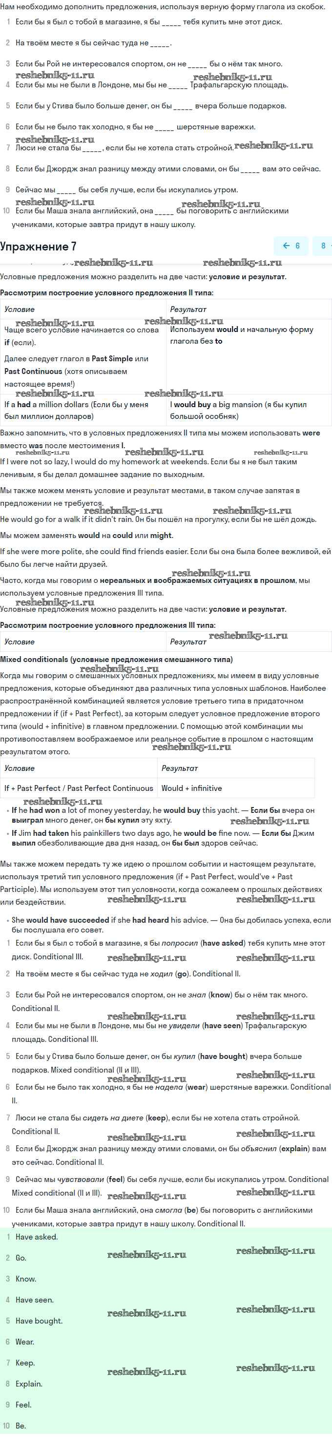 Готовая домашняя работа с ответами по Английскому языку за 11 класс Афанасьева, Михеева, Баранова Учебник Rainbow Базовый уровень Дрофа 2017 ФГОС - Step 8 7