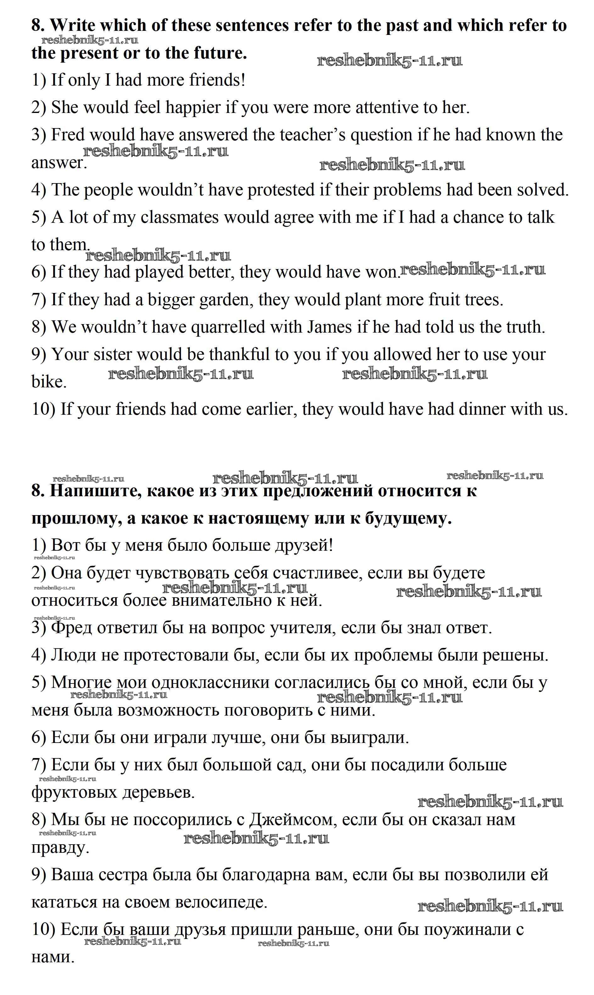 Готовая домашняя работа с ответами по Английскому языку за 11 класс Афанасьева, Михеева, Баранова Учебник Rainbow Базовый уровень Дрофа 2017 ФГОС - Step 8 8