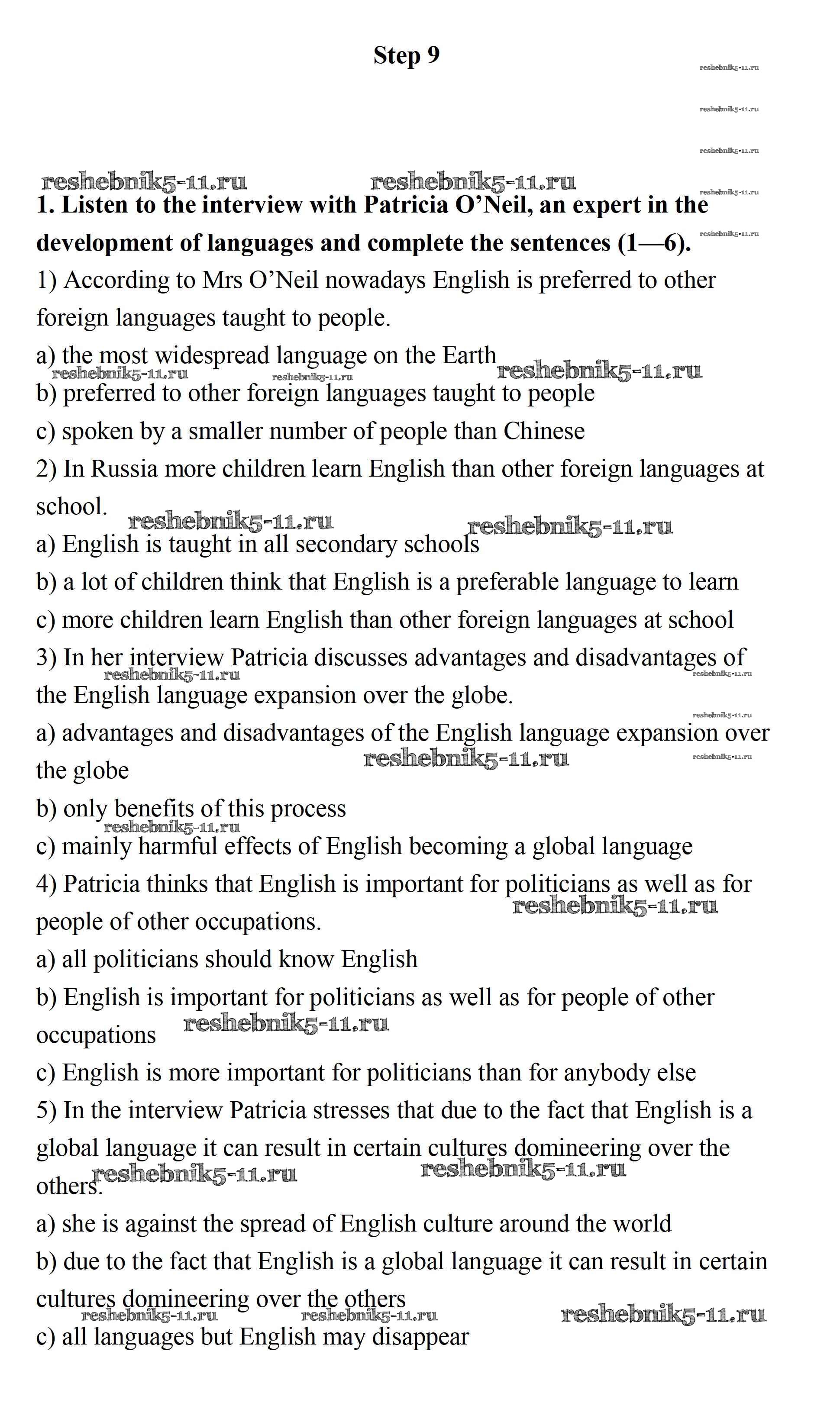 Английский язык за 11 класс Афанасьева Учебник Rainbow Базовый уровень Дрофа step 9 1