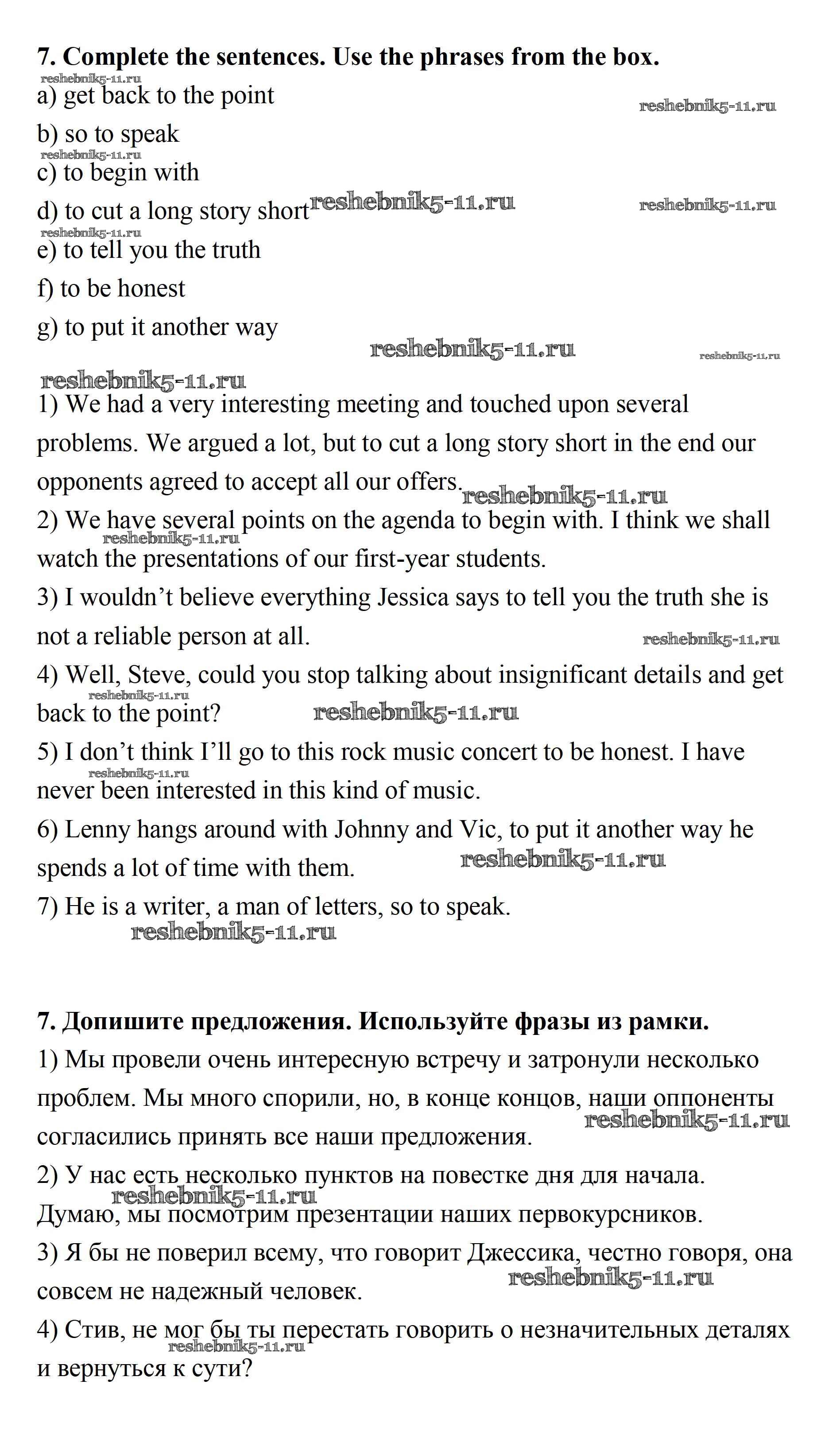 Готовая домашняя работа с ответами по Английскому языку за 11 класс Афанасьева, Михеева, Баранова Учебник Rainbow Базовый уровень Дрофа 2017 ФГОС - Step 9 7