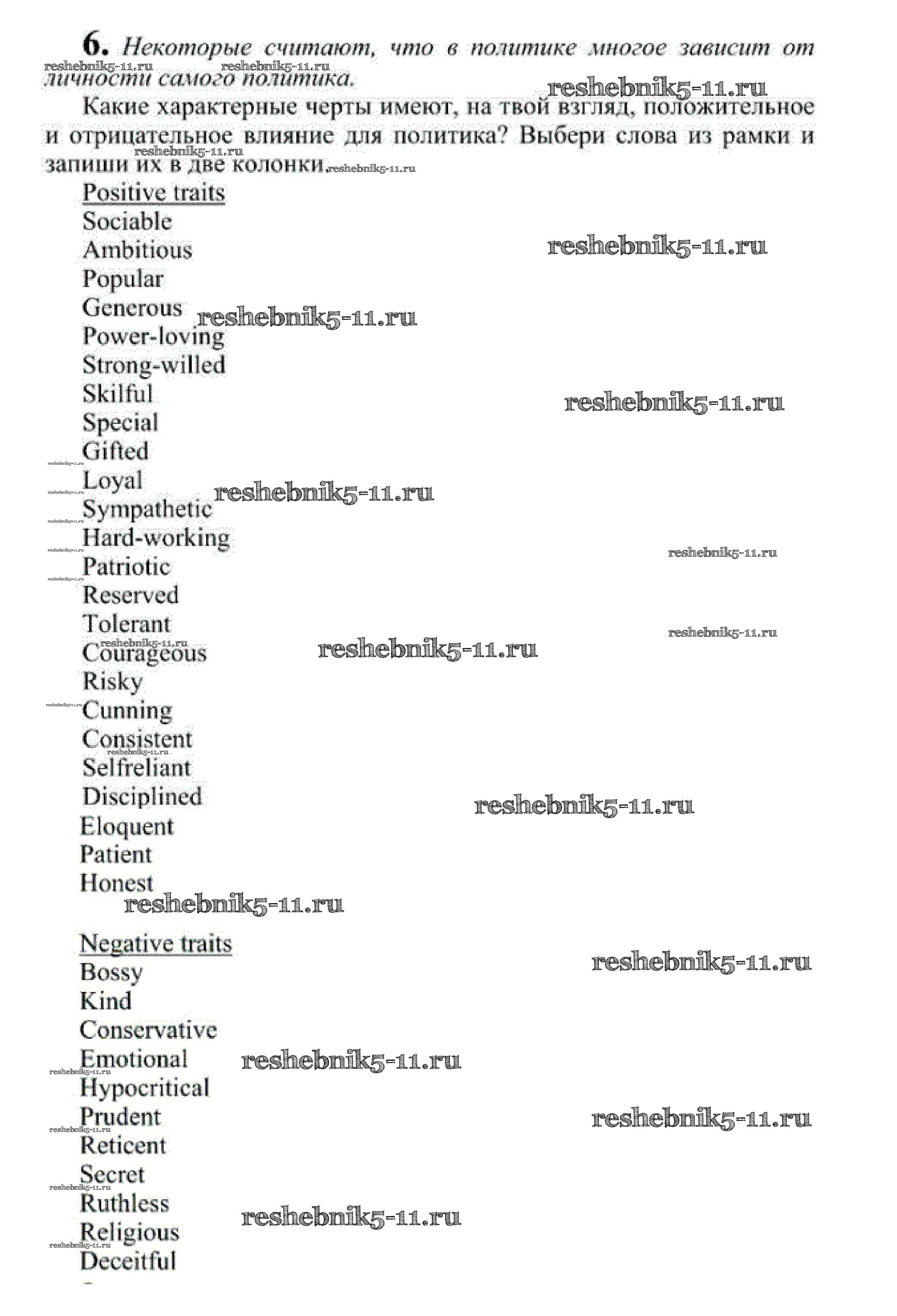 Готовая домашняя работа с ответами по Английскому языку за 10, 11 класс Кузовлев, Лапа, Перегудова, Костина, Кузнецова, Дуванова, Кобец Рабочая тетрадь УМК Просвещение 2012 ФГОС - Unit 2. Western Democracies. Are They Democratic? 6