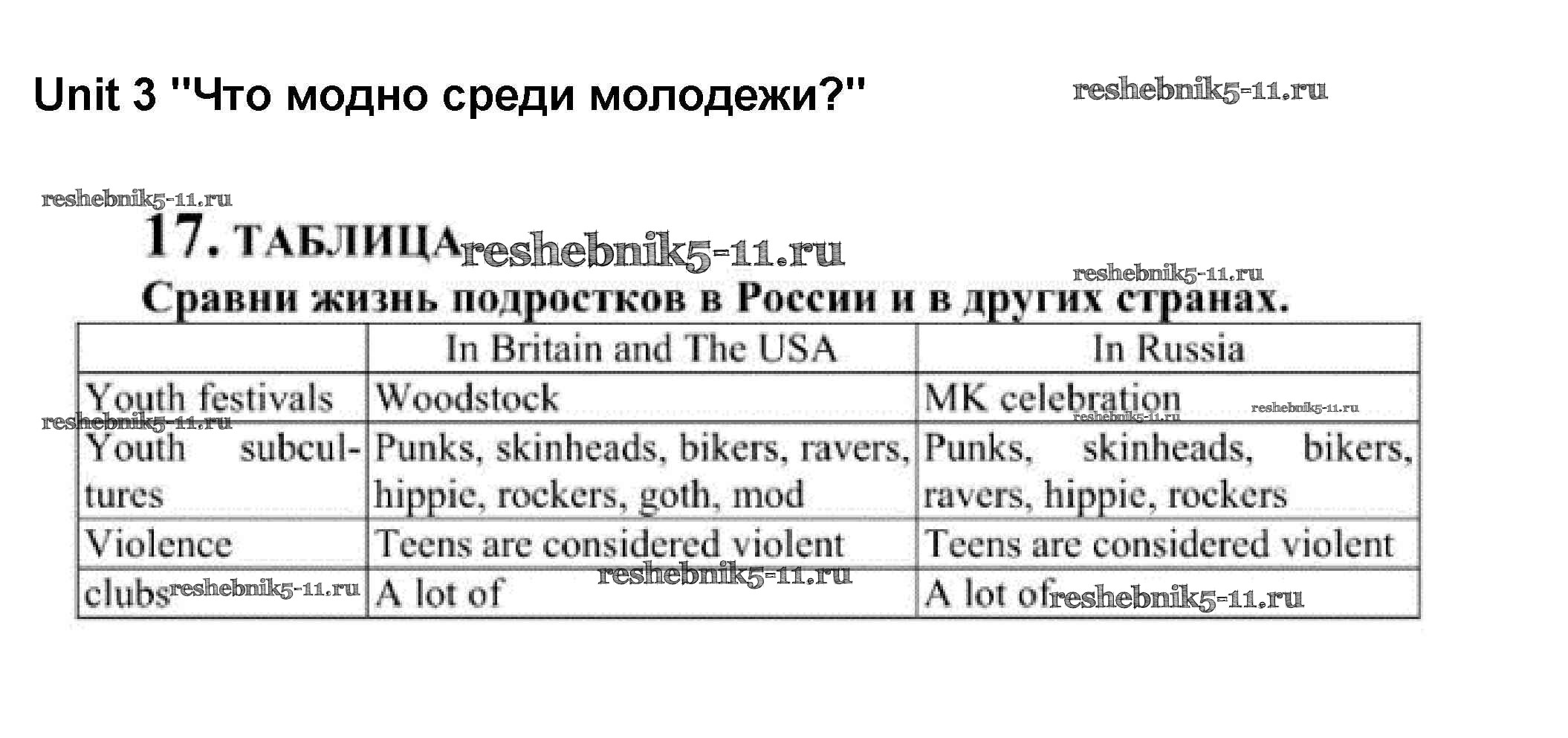 Готовая домашняя работа с ответами по Английскому языку за 10, 11 класс Кузовлев, Лапа, Перегудова, Костина, Кузнецова, Дуванова, Кобец Рабочая тетрадь УМК Просвещение 2012 ФГОС - Unit 3. What Is Hot with the Young Generation? 17