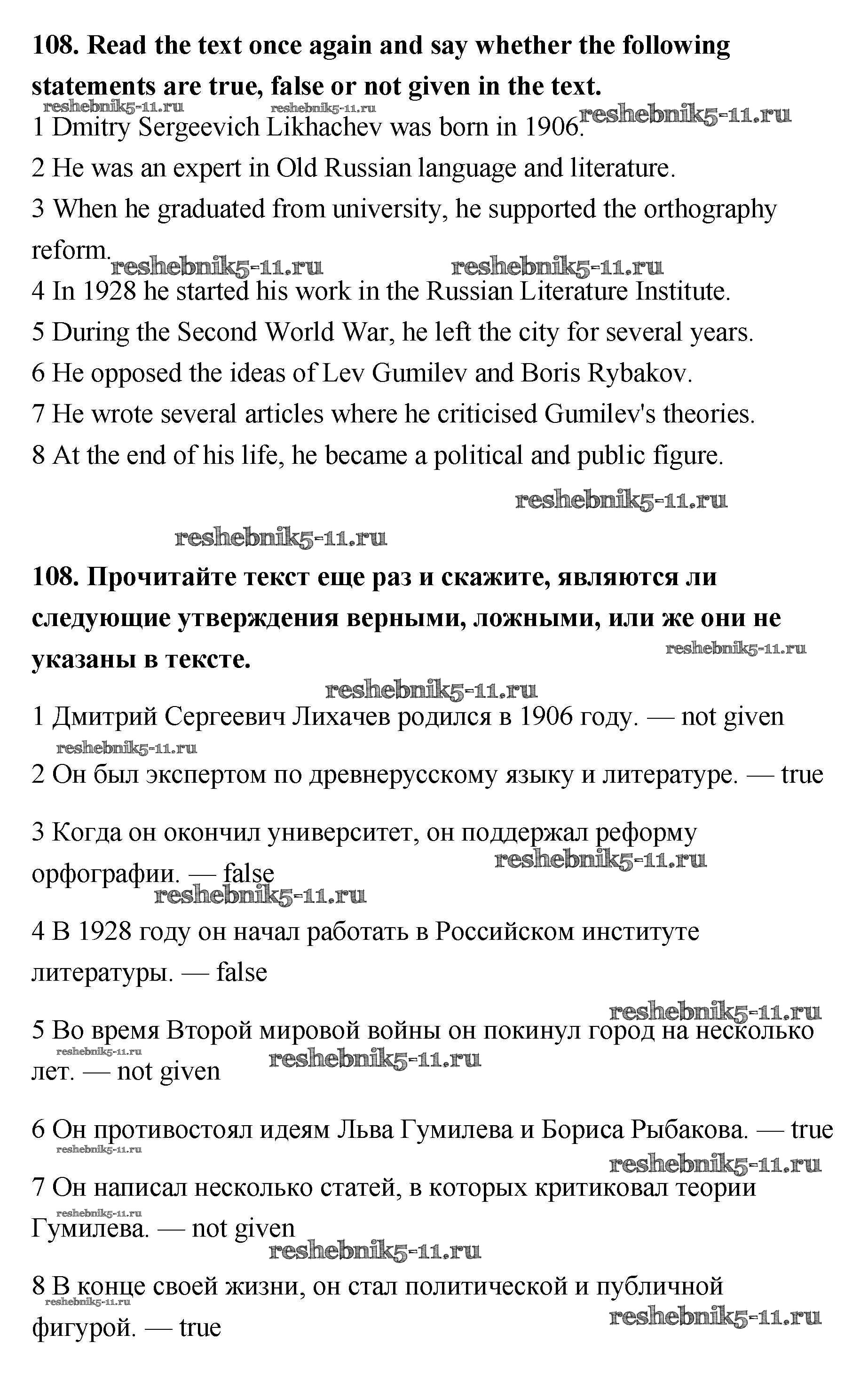 Готовая домашняя работа с ответами по Английскому языку за 11 класс Биболетова, Трубанева Учебник Enjoy English Титул 2015 ФГОС - Unit 1 108