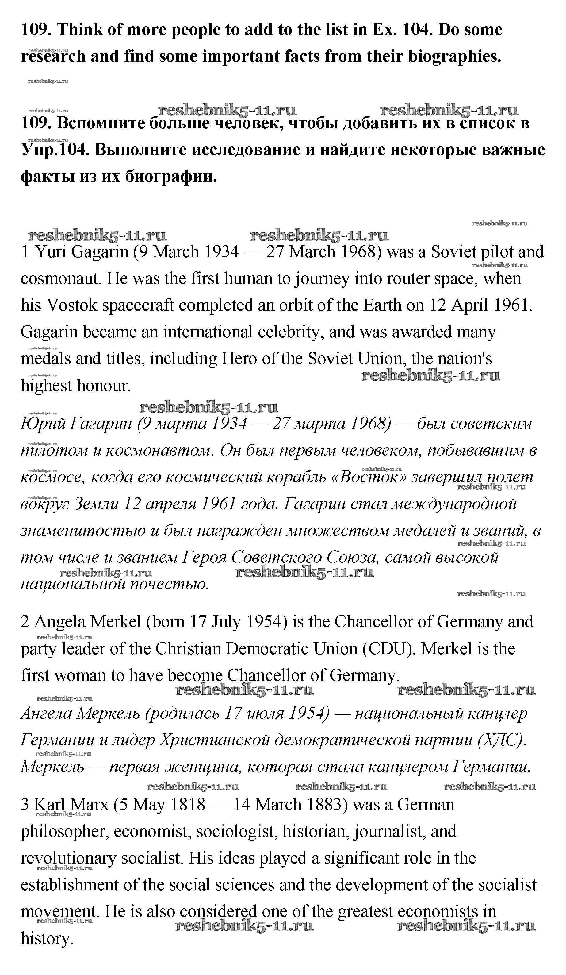 Готовая домашняя работа с ответами по Английскому языку за 11 класс Биболетова, Трубанева Учебник Enjoy English Титул 2015 ФГОС - Unit 1 109