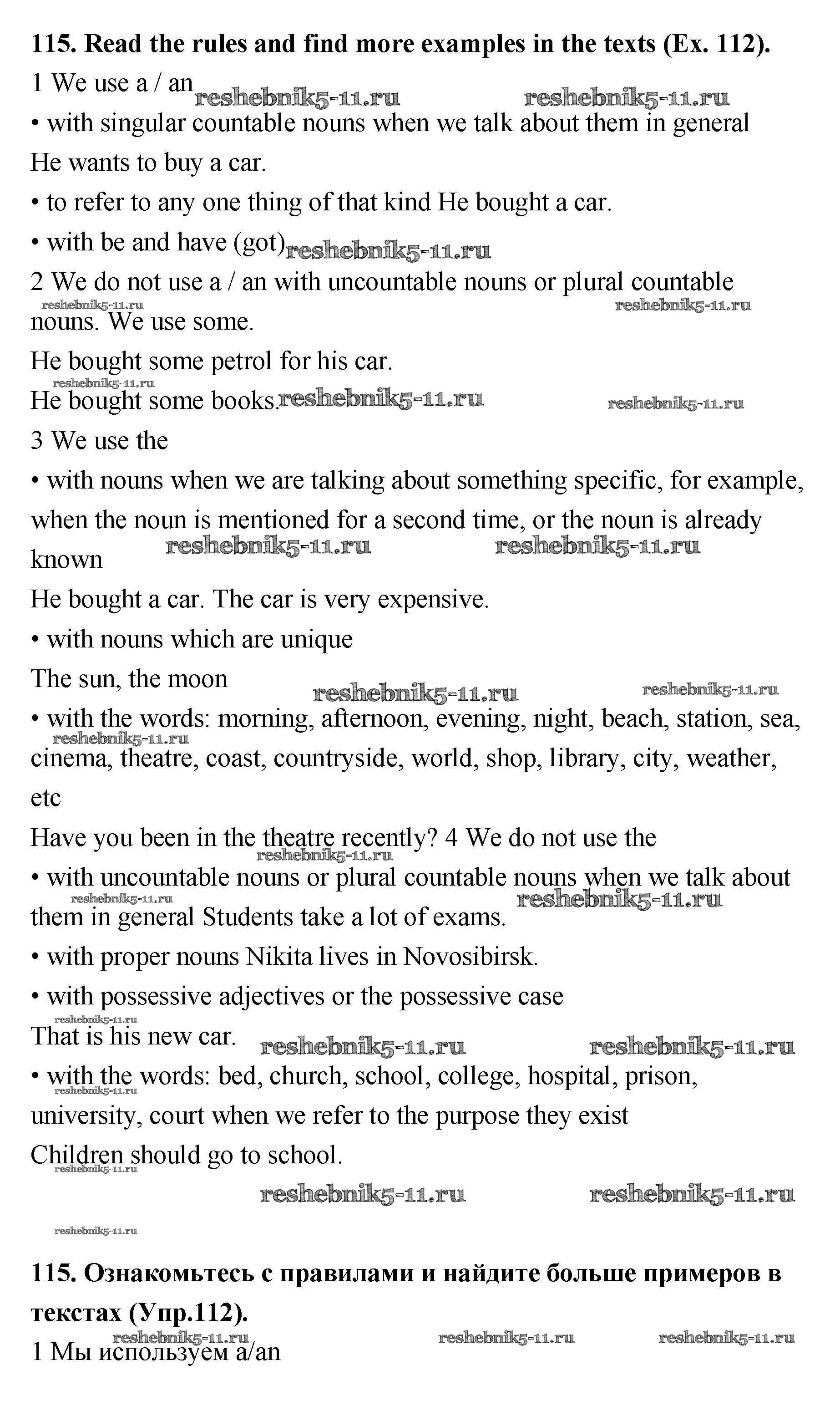 Готовая домашняя работа с ответами по Английскому языку за 11 класс Биболетова, Трубанева Учебник Enjoy English Титул 2015 ФГОС - Unit 1 115