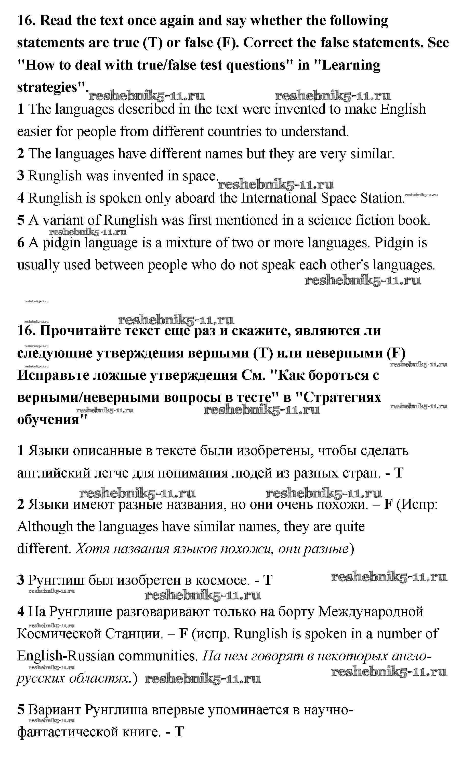 Готовая домашняя работа с ответами по Английскому языку за 11 класс Биболетова, Трубанева Учебник Enjoy English Титул 2015 ФГОС - Unit 1 16