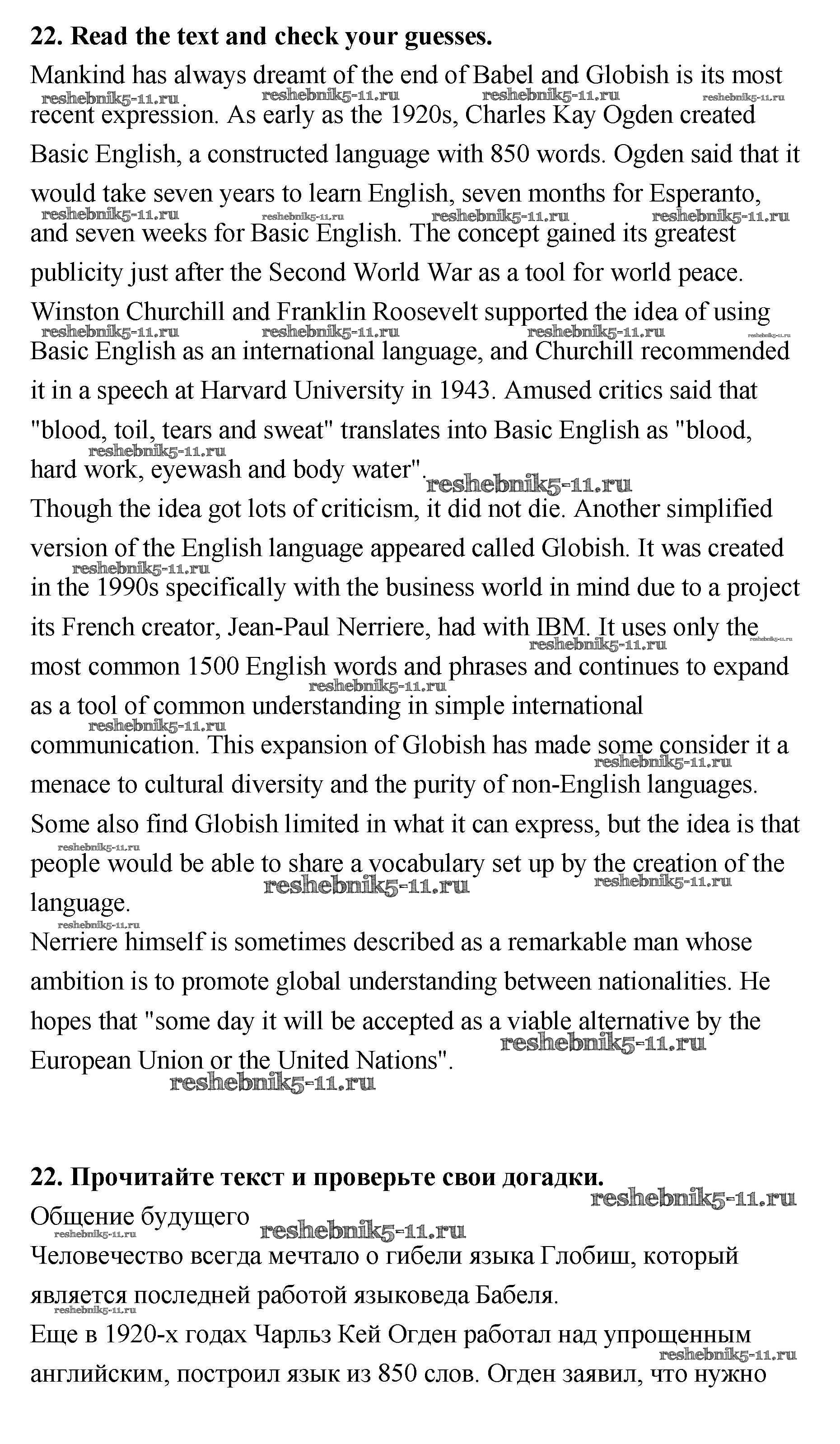 Готовая домашняя работа с ответами по Английскому языку за 11 класс Биболетова, Трубанева Учебник Enjoy English Титул 2015 ФГОС - Unit 1 22